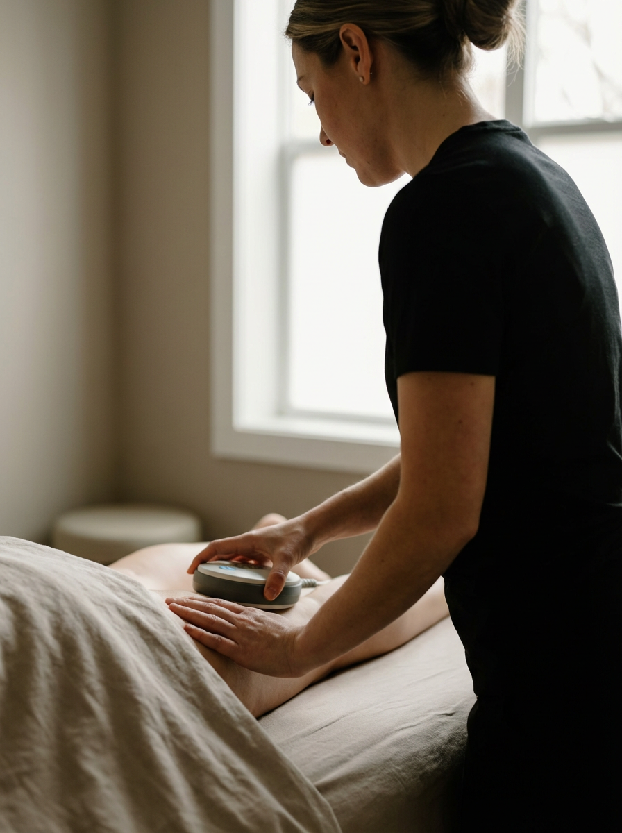 Eine Behandlung mit energiereichem, gebündeltem Licht. Die hohe Lichtmenge dringt ins Gewebe ein, dadurch wird die Heilung nachhaltig angeregt. Als heilungsfördernde und schmerzstillende Wirkung hat sich die Lasertherapie bereits auf vielen medizinischen Gebieten bewährt. Krankheitsbilder wie z.B. Tennisellbogen, Ischiasbeschwerden, Kniegelenksarthrose, Muskelverletzungen, Sehnenscheidenentzündungen oder auch gezielte Behandlungen von Schmerzpunkten sind möglich.
