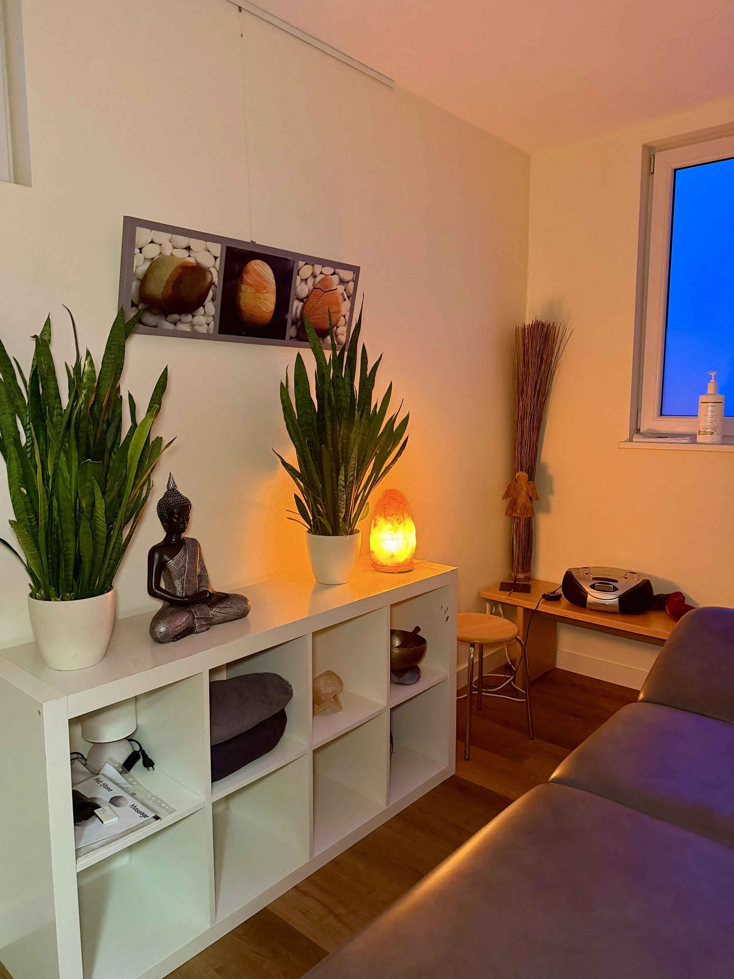 Eine faszinierende Verbindung aus wohltuender Wärme und entspannter Massage. Es werden vulkanische Lavasteine erwärmt und an verschiedenen Körperstellen aufgelegt. Gleichzeitig werden weitere erwärmte Steine mit harmonischen Streichungen und duftendem Massageöl sanft über die Haut geführt und massiert. Eine wohlige Wärme entfaltet sich, tiefes Loslassen und Entspannen wird möglich.
